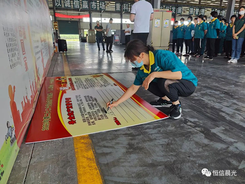 生產(chǎn)經(jīng)理帶領全體員工進行宣誓并簽字。
