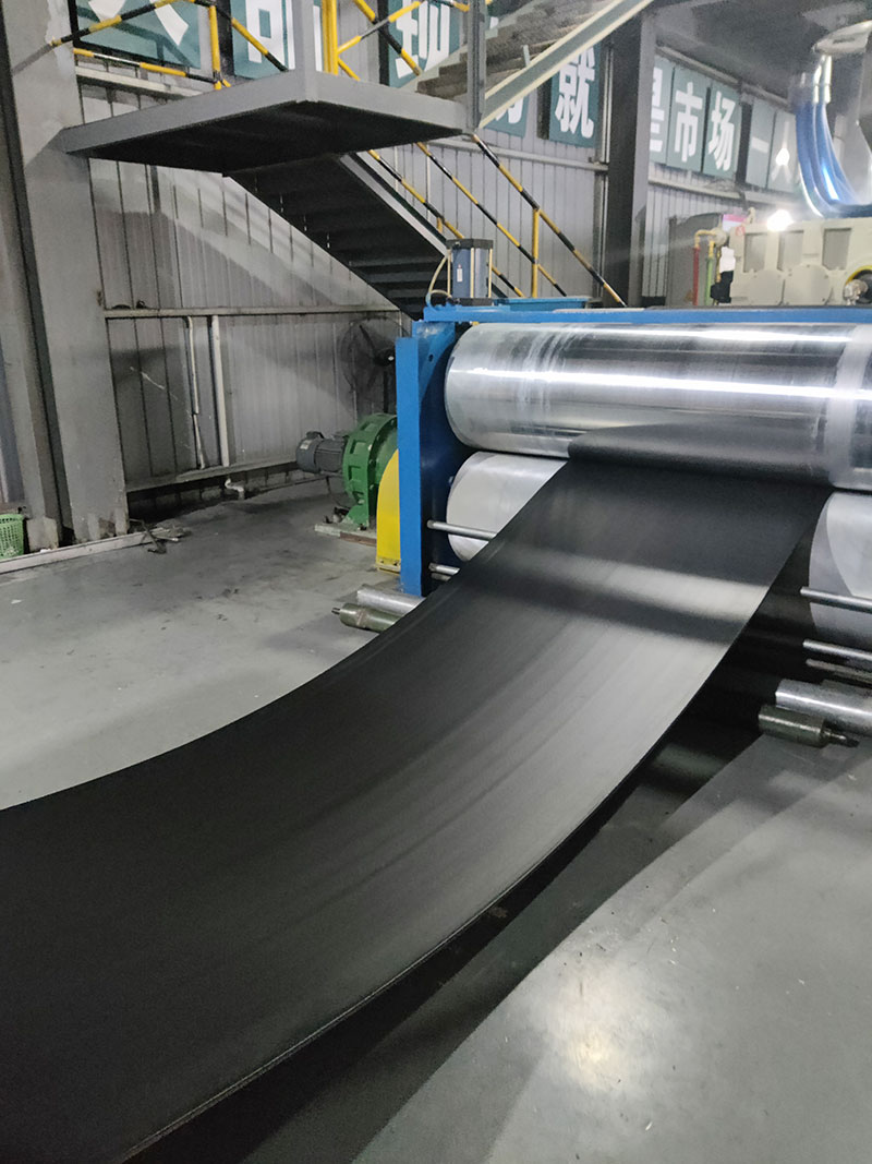 本輸送帶由三部分組成:整體帶芯、聚氯乙烯浸漬糊、覆蓋層。整體帶芯是輸送帶的骨架材料,聚氯乙烯增塑糊用來(lái)填充浸漬帶芯,聚氯乙烯增塑糊由各種不同性能的化工原料組合形成,以確保輸送帶所需要的安全性能,比如阻燃性能和抗靜電性能等。覆蓋層決定了輸送帶的運(yùn)輸特性、抗沖擊特性、耐磨特性、耐腐蝕特性,它通過(guò)高溫塑化或平板硫化形成。