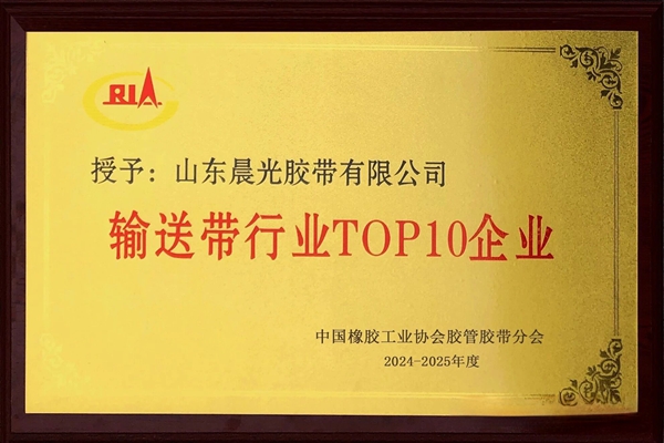 近日,中國(guó)橡膠工業(yè)協(xié)會(huì)膠管膠帶行業(yè)權(quán)威評(píng)選結(jié)果揭曉,山東晨光膠帶有限公司以卓越實(shí)力斬獲"2024-2025年度輸送帶行業(yè)TOP10企業(yè)"稱號(hào),董事長(zhǎng)曹彥賓同期獲評(píng)"膠管膠帶行業(yè)優(yōu)秀企業(yè)家",雙譽(yù)加身彰顯企業(yè)硬核實(shí)力。
